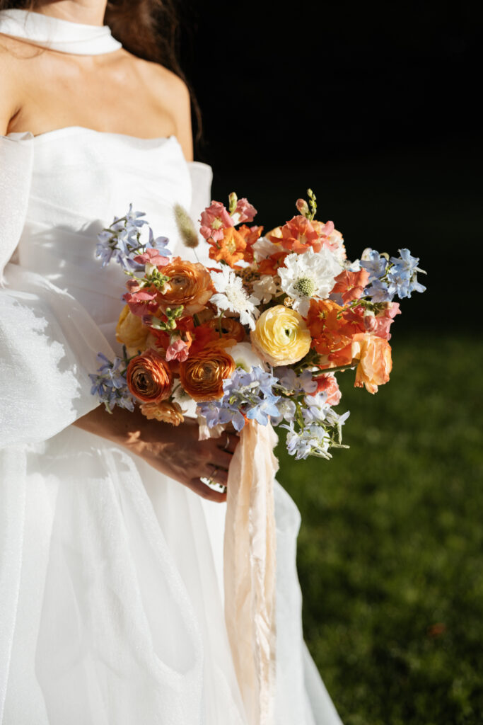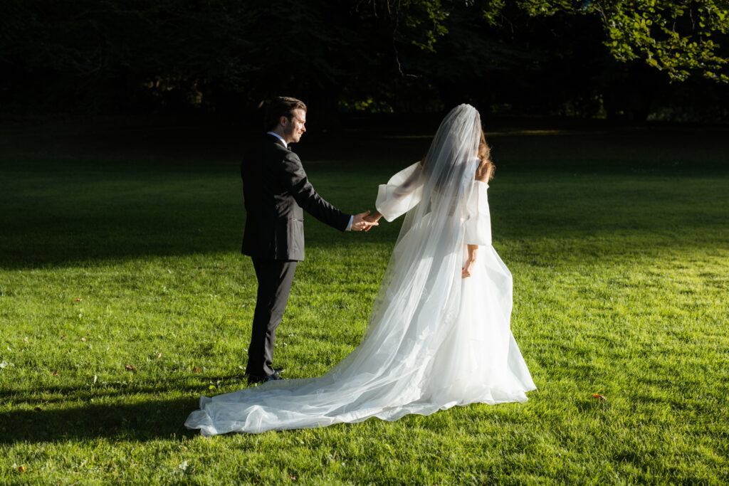 With the gardens in full bloom, every corner made a stunning backdrop. The bride and groom wandered the pathways for their portraits, wrapped in soft golden hour light that added depth and warmth to every image.